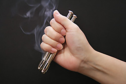 冷温器と呼ばれる管に熱源であるテルミー線を入れて火をつけ、体表を撫でるように摩擦を加えながら施術していきます。
