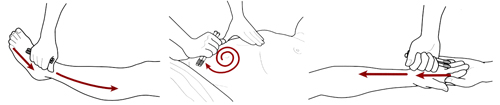 また、摩擦刺激ができないような疾患の際には「空間法」という患部に触れないで行う方法もあります。